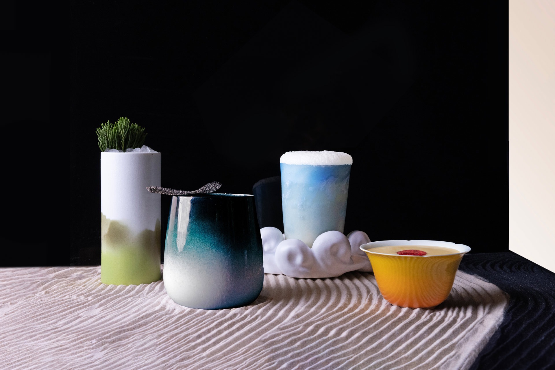 The cocktails are served up in custom-made glassware made using 3D printing techniques, as well as handcrafted porcelain. Glassware is a creation of Hong Kong-based Soekjing Studio, while ceramics were fashioned by Tung Yao Production. Other interactive vessels and coasters meanwhile were brought to life by 3D Vault.
