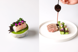 Elsewhere, the Côte De Boeuf à La Bordelaise consists of an Argentinian rib-eye, roasted and finished with a red wine glaze and bone marrow. Accompaniments include the Pomme Purée.